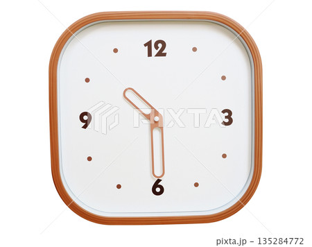 Round wall clock showing 05:20 or 17:20 isolated on white background. Concept of time, punctuality, deadline, or beginning of a new day.