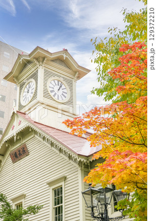 秋の北海道 札幌市時計台 縦構図