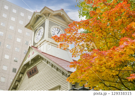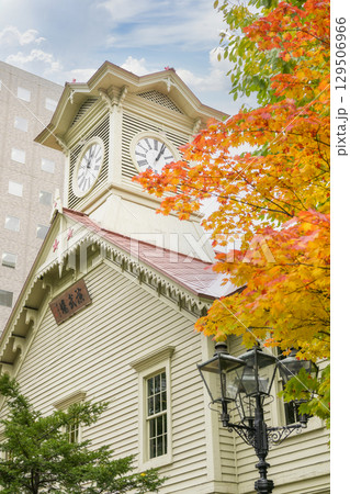 北海道 紅葉時期の札幌市の時計台