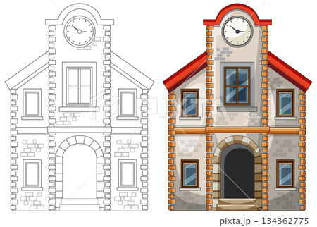 Cartoon Stone Clock Tower Building Front View
