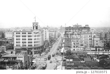 古写真 1932-1933年 東京 銀座通り(中央通り) 銀座四丁目付近のパノラマ