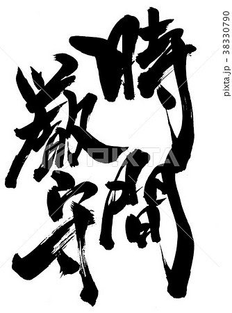 書道:時間厳守-縦書き-デザイン円-07小豆