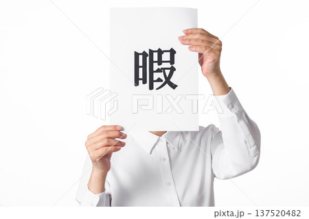暇と書かれた紙を両手で持つ白いシャツを着た人物
