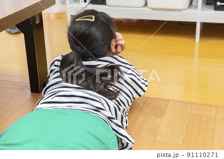 寝転んでテレビを見る子供