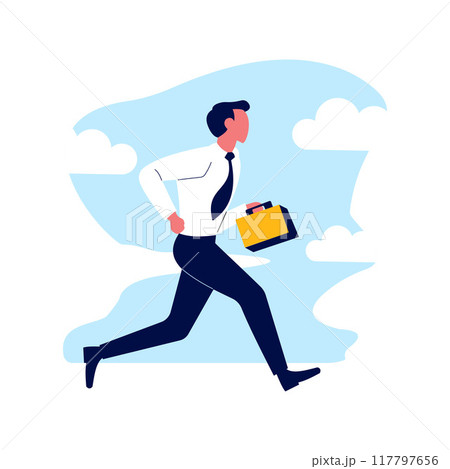 Employee Businessman Man Running Fast Go to Work with Holding Suitcase