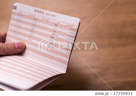 預金通帳 貯金通帳を確認するシニア