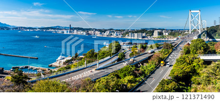 和布刈第二展望台からの関門橋 パノラマ【福岡県北九州市】