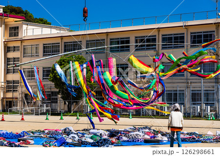 戸町中学校のクレーン鯉のぼり【長崎市】