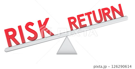 Risk vs Return balance concept. Seesaw with red text. Business, finance, economics, or investment-related concept. 3D rendering