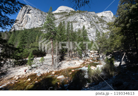 Sunny view of the river landscape in Yosemite National Park