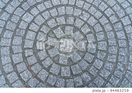 淡く明るい薄灰色の古びた石畳の路面の背景画像