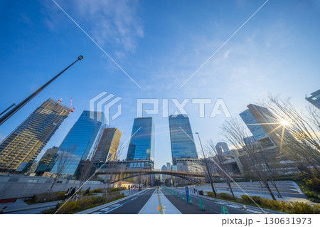 大阪梅田の都市風景 早朝 大阪富国生命ビル