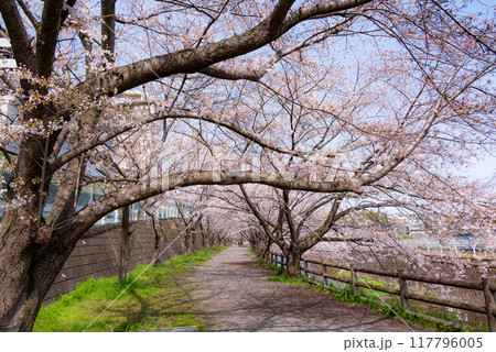 目久尻川沿いに咲く満開の桜