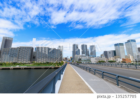 東京 江東区 環二通り沿いの都市風景(豊洲大橋付近)