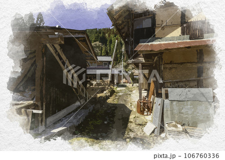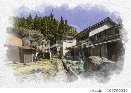 水彩画風 智頭宿 板井原集落 板井原ふるさと館 鳥取県八頭郡智頭町