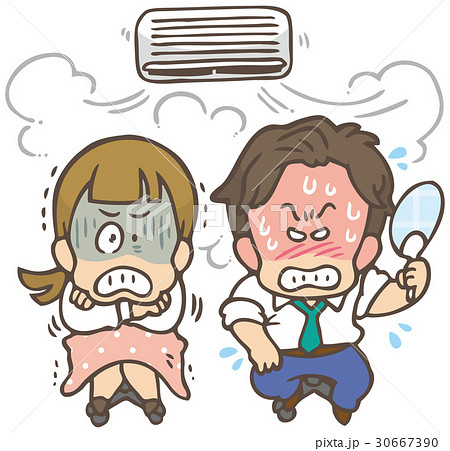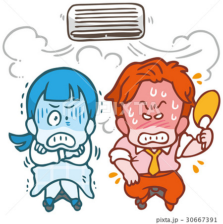 エアコンで暑がる男性と寒がる女性