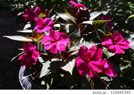 蕾から開花し始めた鮮やかなピンクのマダガスカル・ペリウィンクル(ニチニチソウ)