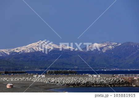北海道留萌市ゴールデンビーチるもいから見た暑寒別連峰