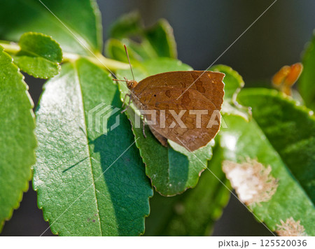 アラカシの葉に止まる暖地性蝶 シジミチョウ科ムラサキシジミ♂