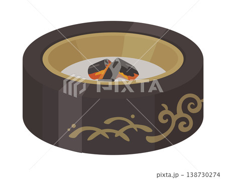 炭が灰になった火桶のイラスト素材