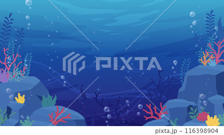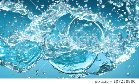 深海の気泡と星のきらめき。神秘的な青いグラデーションのイメージ素材。