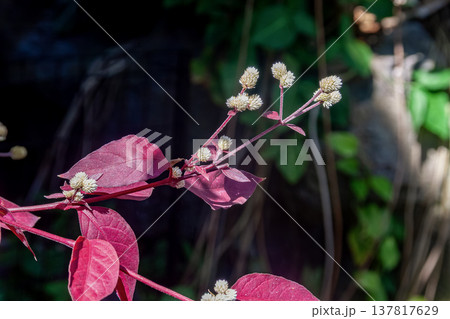 暗紫色の葉が鮮やかなアカバセンニチコウ【赤葉千日紅】