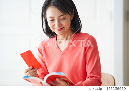 単語帳で英語の勉強する女性