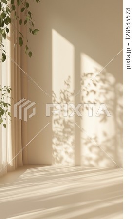 Vivid beige wall with shadow sun light from window in living room minimalist story background
