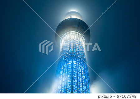 都市夜景 夜霧の東京スカイツリーライトアップ