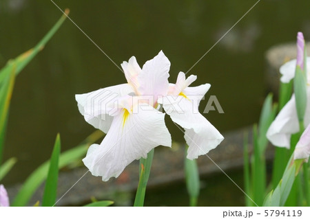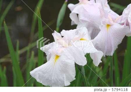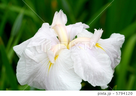 白地に極薄ピンク色が入るパステルな花菖蒲・曙光