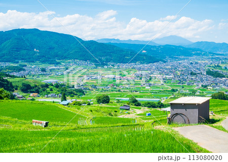 姨捨の棚田と善光寺平(夏)