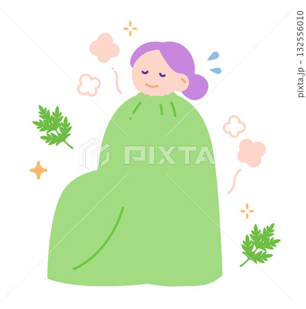 よもぎ蒸しの温活でリラックスする女性のイラスト