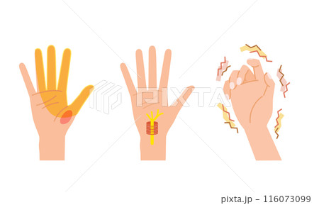 女性の更年期障害:手根管症候群のイメージイラストセット