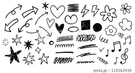 手書き 落書き クレヨン風 セット 黒 ベクター