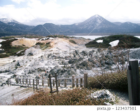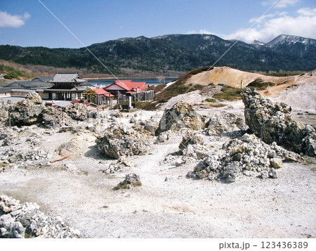 青森県むつ市の恐山の奥の院から見た無間地獄