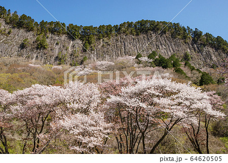 春の屏風岩公苑 山桜と屏風岩 奈良の桜の名所