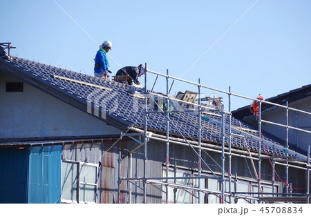 棟瓦の修理 棟瓦を積む