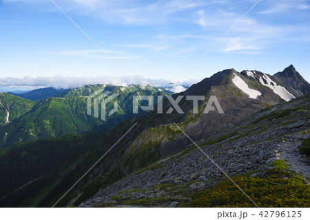 南岳の稜線から槍ヶ岳と中岳、大喰岳