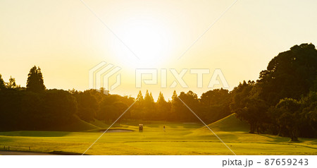 ゴルフ場 ゴルフコース 夕景 風景 【 ゴルフ の イメージ 】