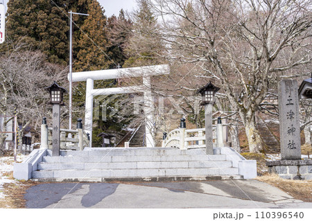 冬の土津神社 白い鳥居と参道 福島県猪苗代町