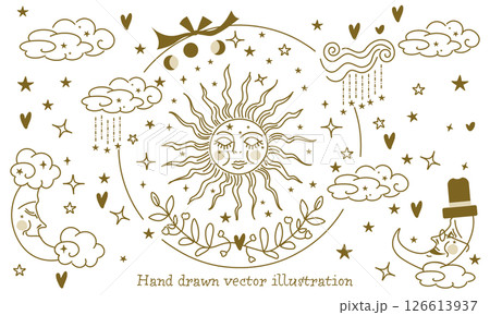 太陽と月と星々のラインアート