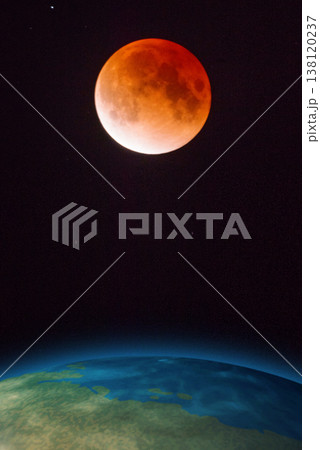 皆既月食と地球 合成イメージ
