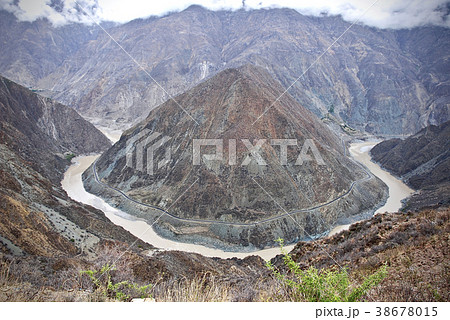 中国 雲南省 早春の揚子江上流・金沙江月亮湾