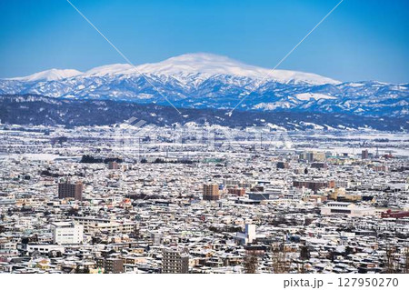 山形市街地と雪白の月山