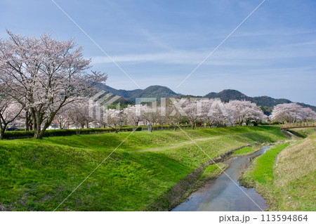 桜咲くのどかな川の風景