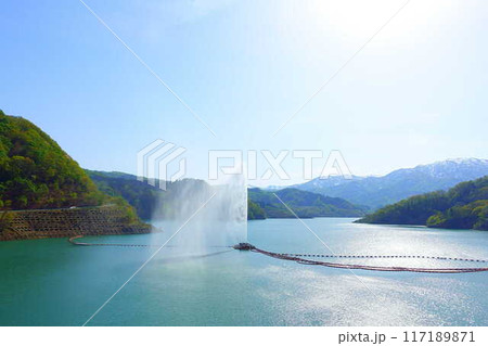 寒河江ダム 月山湖 大噴水 月山 西川町