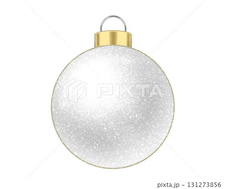 glass ball Christmas ornament with frosted snowflake patterns isolated on white background, Xmas ball shiny decor, Happy New Year wintertime decoration