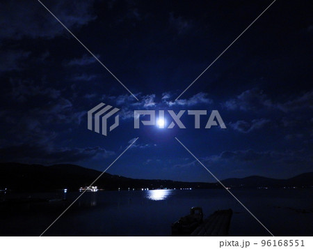 ヤマナカ・ブルー 満月の日のムーンロード 霜月の月あかりのみち山中湖の湖畔