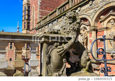 Statue of lion at the entrance to Frederiksborg castle in Hillerod, Denmark