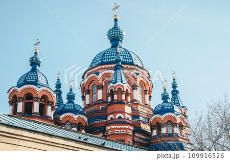 Beautiful architecture of Kazan Church an iconic Orthodox church in the city of Irkutsk, Russia.